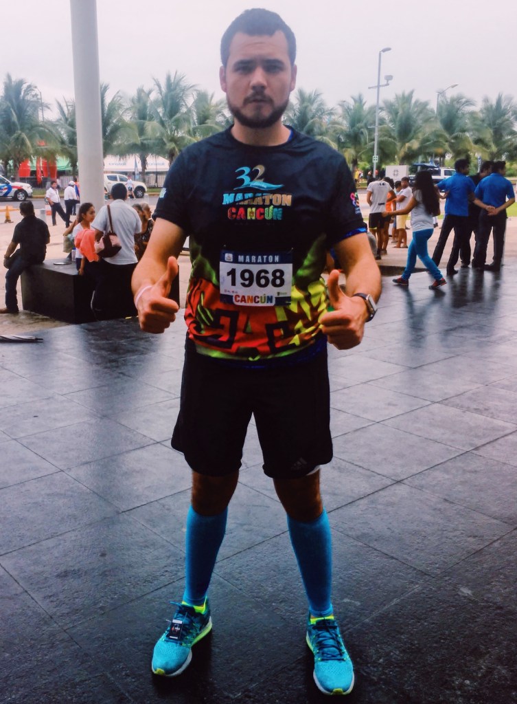 Mis padres por haberme pagado el viaje… y por darme seguridad. Dos días antes había corrido mis últimos 10 km con la finalidad de adaptarme al clima de Cancún. Fue fatal, me lastime un dedo, la respiración la sentía lenta y comencé a tener muchas inseguridades.