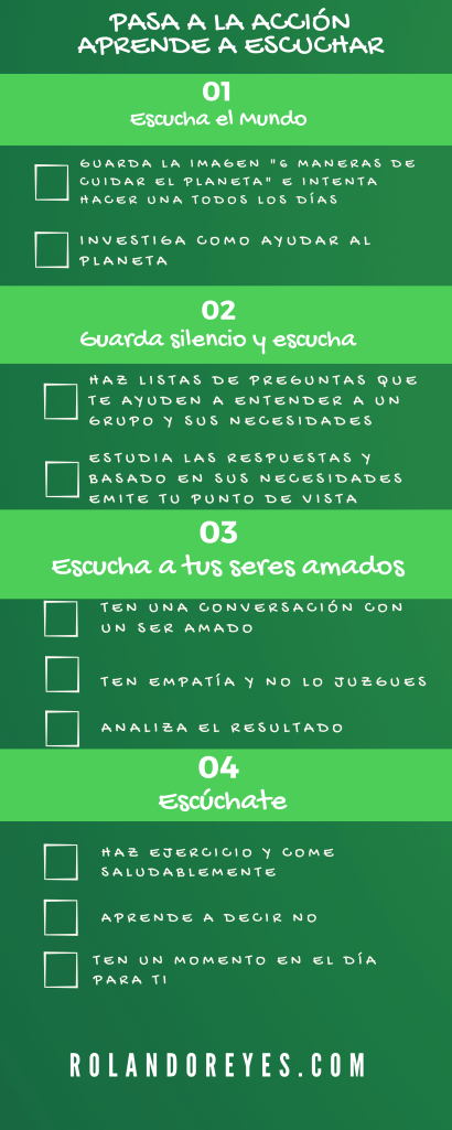 Aquí te dejo una lista para escuchar con atención. Descárgala, aplícala y observa si ha beneficiado tu manera de escuchar a tu entorno.